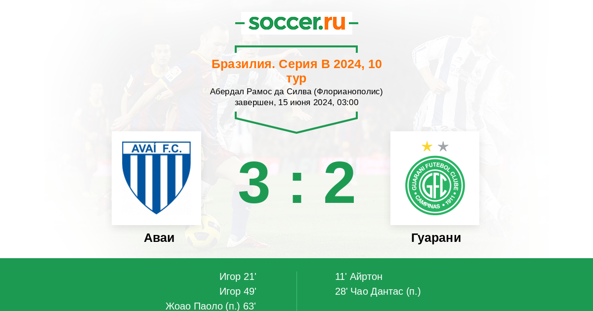 Протокол матча Аваи против Гуарани