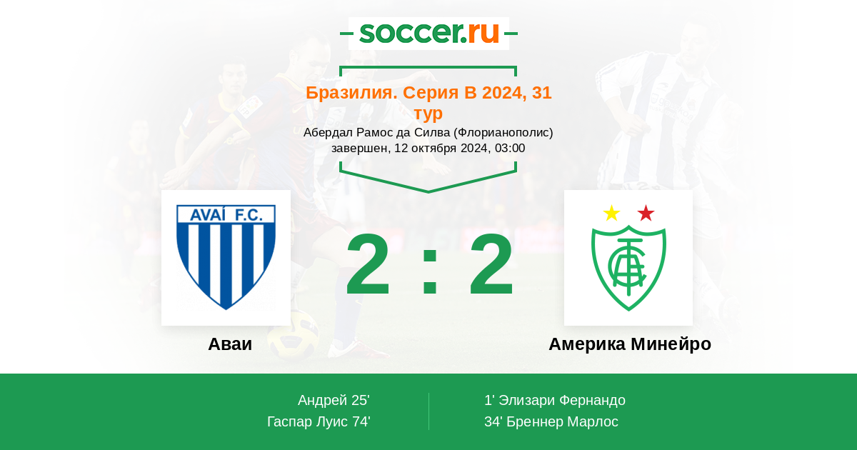 34' (1:2) Бреннер Марлос (9) (Родригиньо (75))