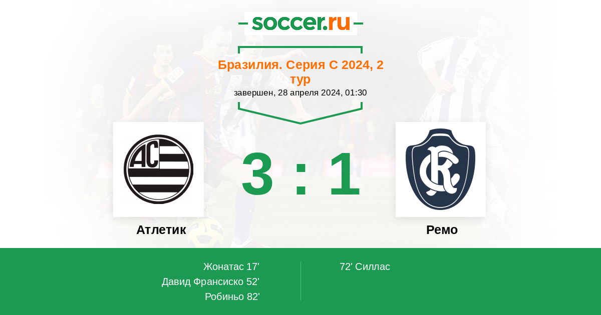 Протокол матча Атлетик против Ремо