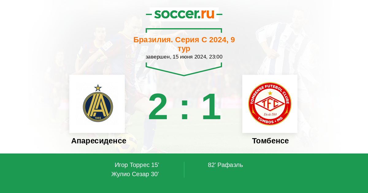 Протокол матча Апаресиденсе против Томбенсе