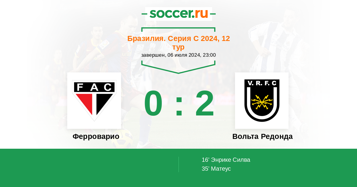 Протокол матча Ферроварио против Вольта Редонда