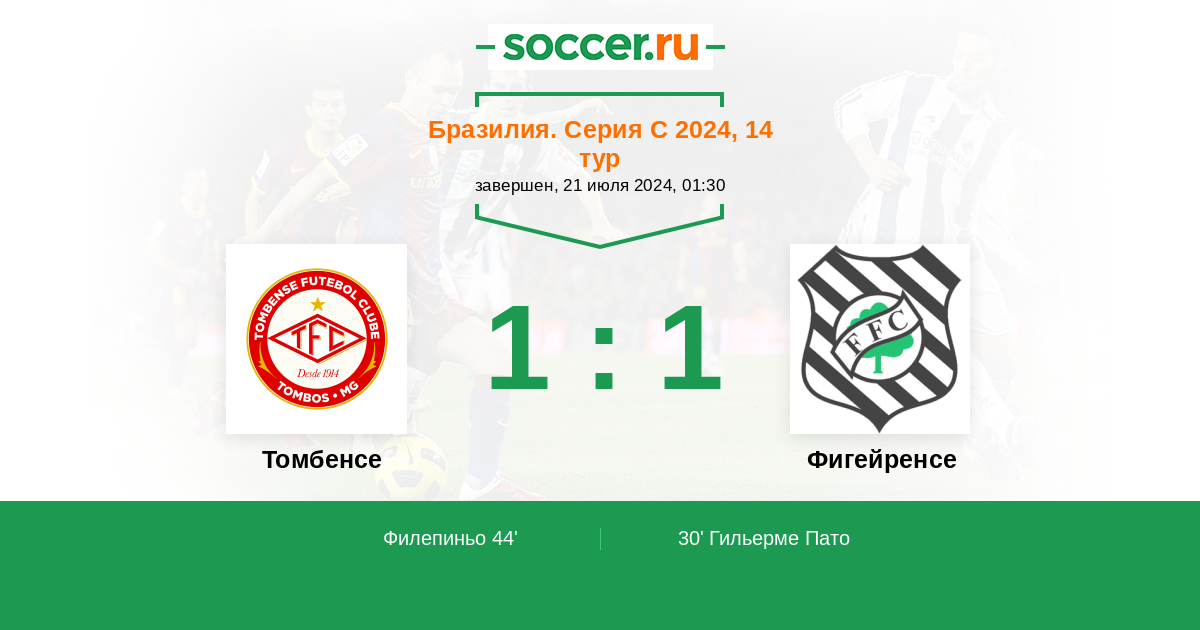 Протокол матча Томбенсе против Фигейренсе