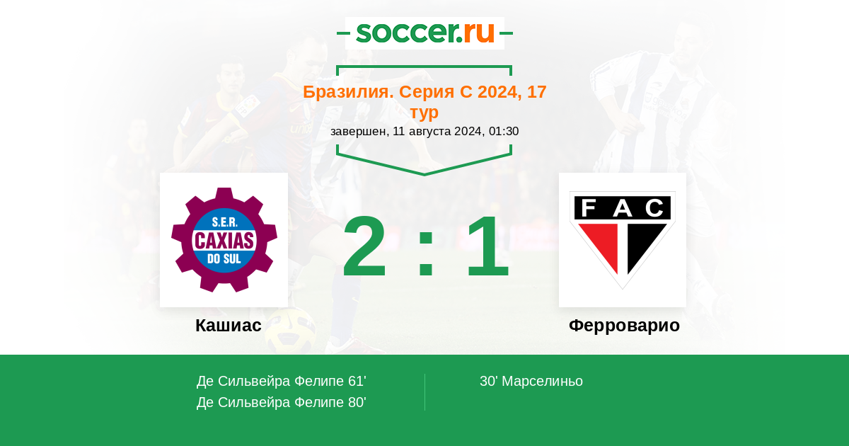 Протокол матча Кашиас против Ферроварио