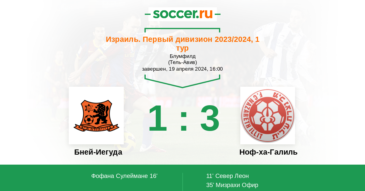 Протокол матча Бней-Иегуда против Ноф-ха-Галиль
