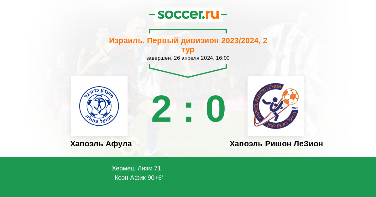 Протокол матча Хапоэль Афула против Хапоэль Ришон ЛеЗион