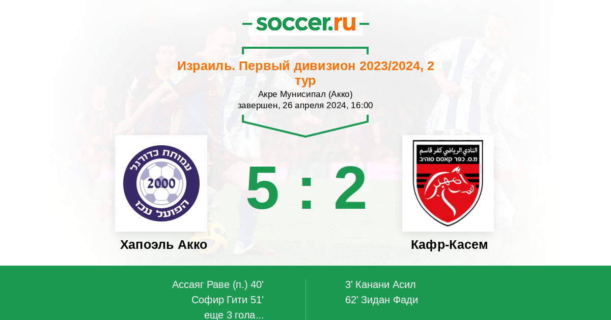 Протокол матча Хапоэль Акко против Кафр-Касем