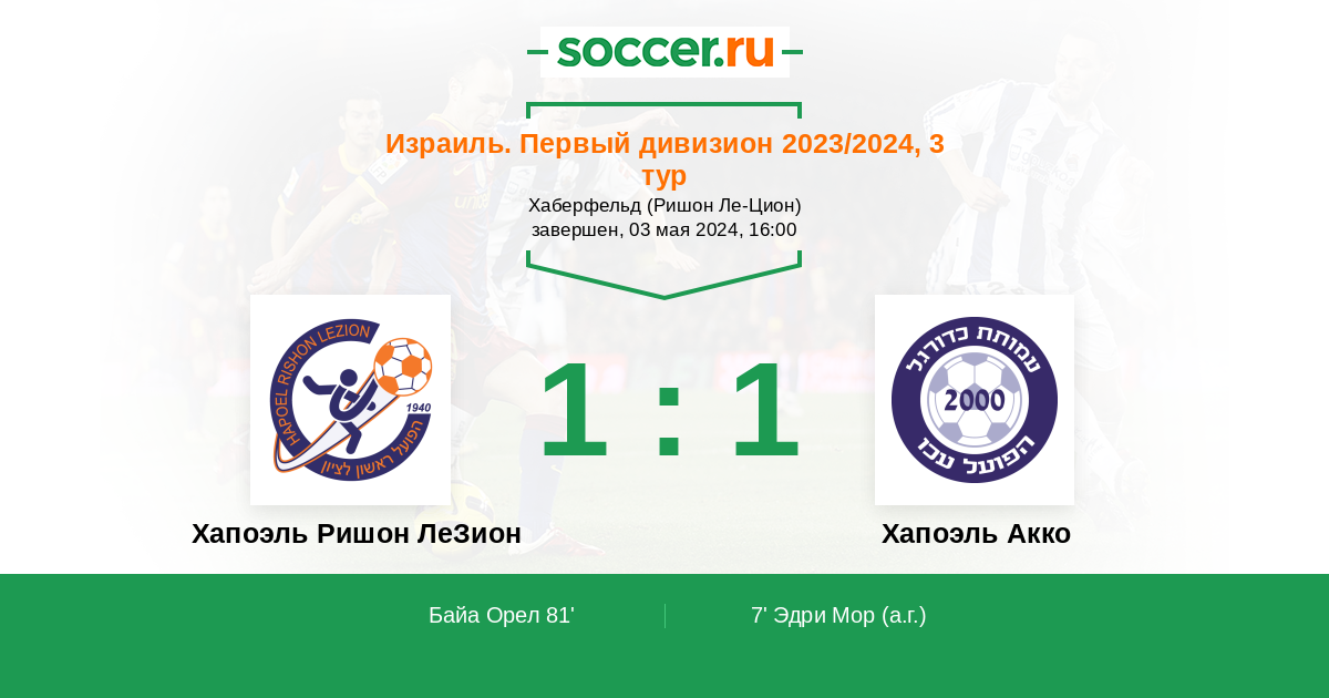 Протокол матча Хапоэль Ришон ЛеЗион против Хапоэль Акко