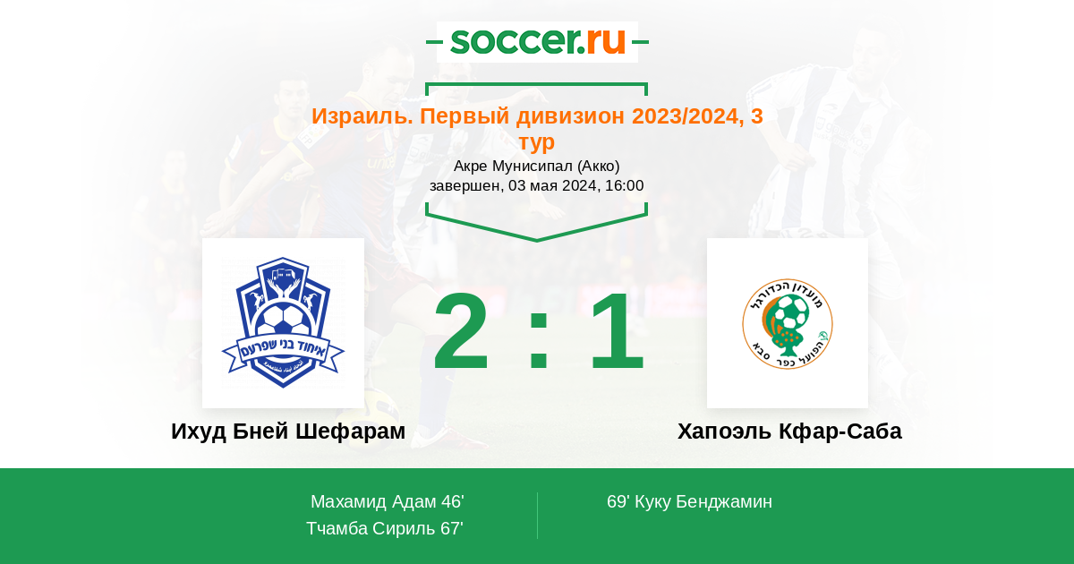 Протокол матча Ихуд Бней Шефарам против Хапоэль Кфар-Саба