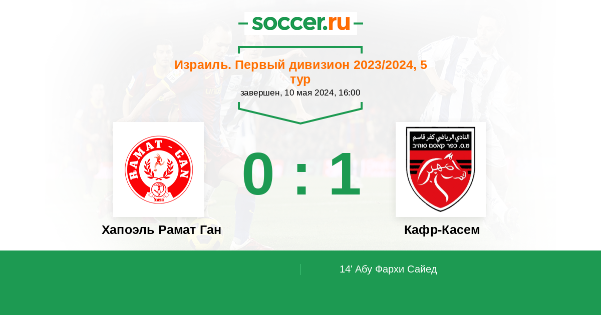 Протокол матча Хапоэль Рамат Ган против Кафр-Касем
