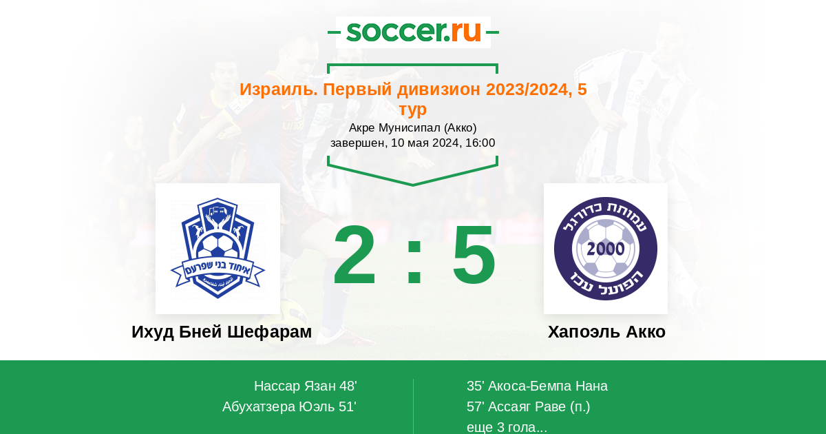 Протокол матча Ихуд Бней Шефарам против Хапоэль Акко