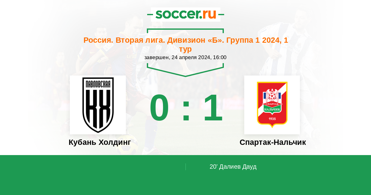 Протокол матча Кубань Холдинг против Спартак-Нальчик