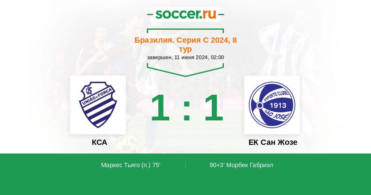 Протокол матча КСА против ЕК Сан Жозе