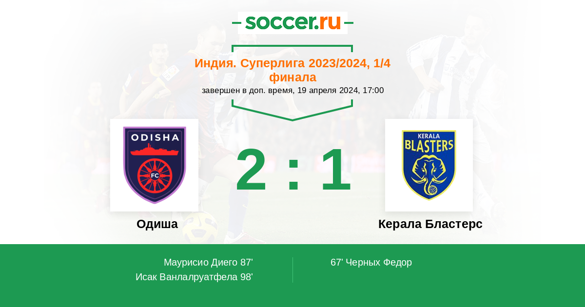 Протокол матча Одиша против Керала Бластерс