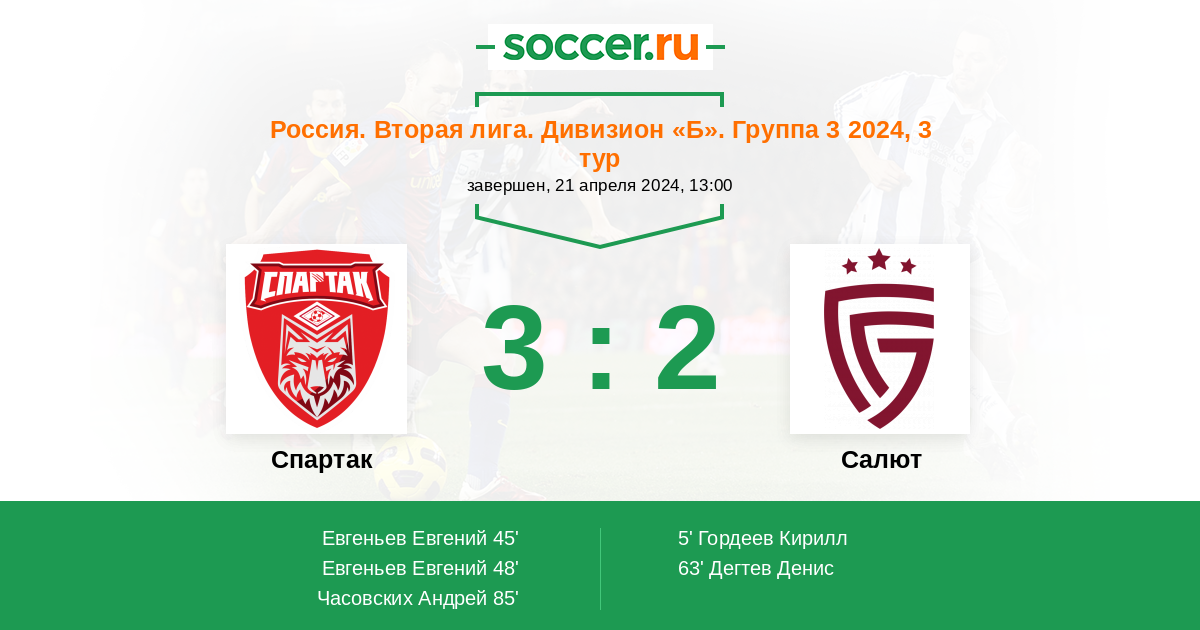 Протокол матча Спартак против Салют