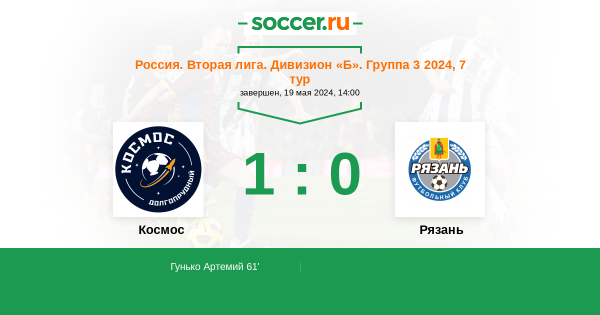 Протокол матча Космос против Рязань