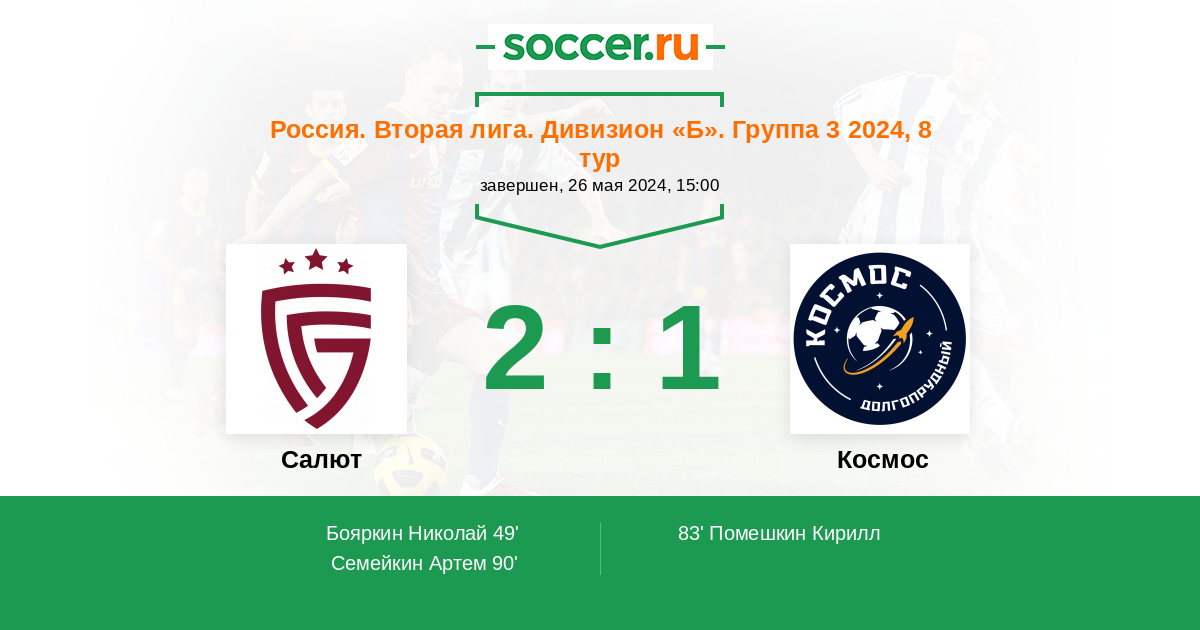 Протокол матча Салют против Космос