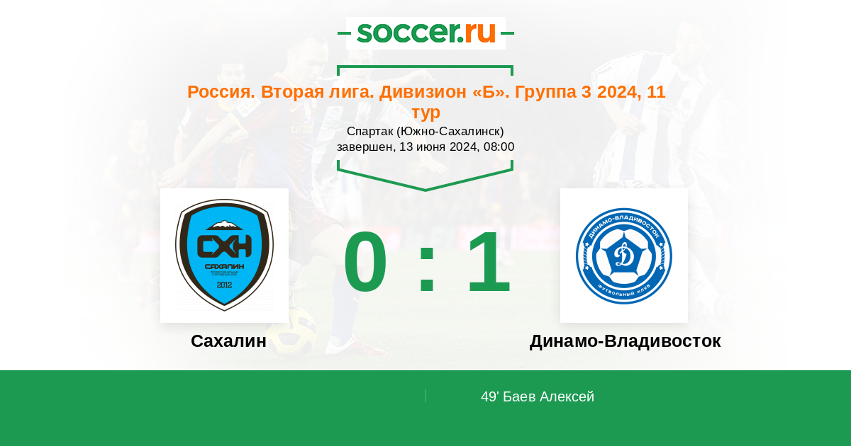 Протокол матча Сахалин против Динамо Владивосток