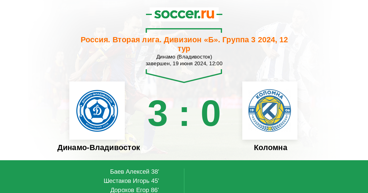 Протокол матча Динамо Владивосток против Коломна
