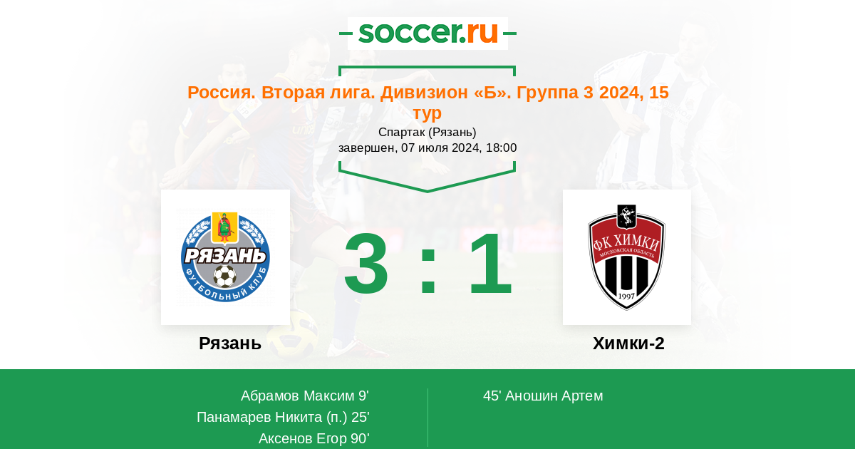 Протокол матча Рязань против Химки-2
