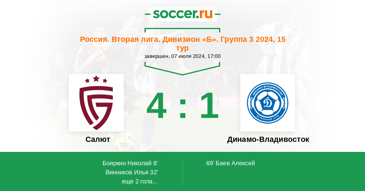 Протокол матча Салют против Динамо Владивосток