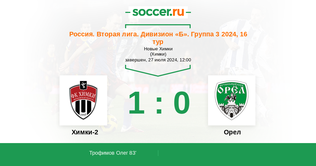 Протокол матча Химки-2 против Орел