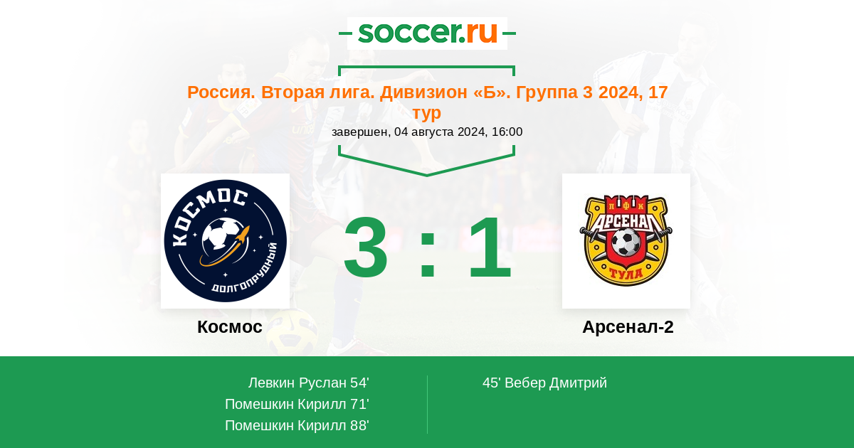 Протокол матча Космос против Арсенал-2
