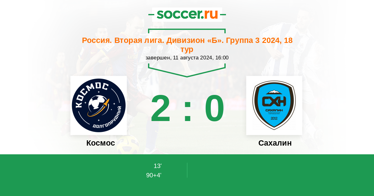 Протокол матча Космос против Сахалин