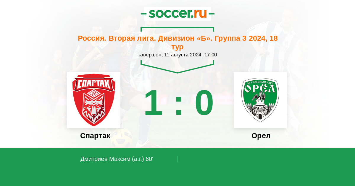 Протокол матча Спартак против Орел