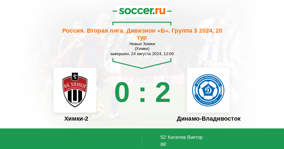 Протокол матча Химки-2 против Динамо Владивосток