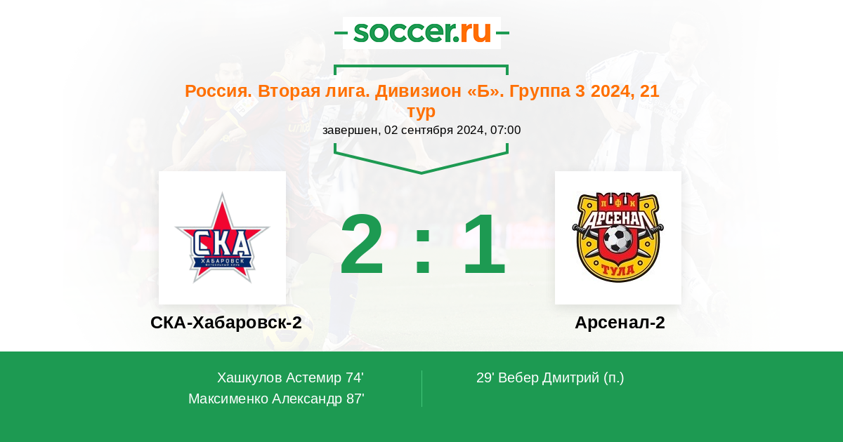 Протокол матча СКА-Хабаровск-2 против Арсенал-2