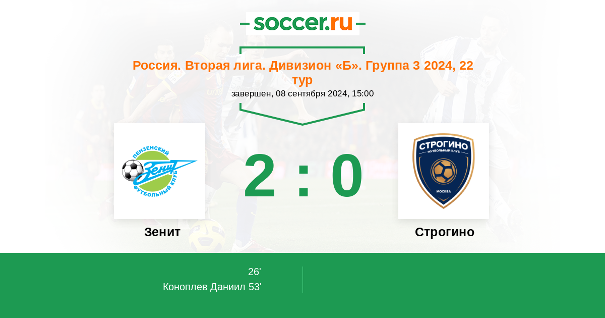 Протокол матча Зенит против Строгино