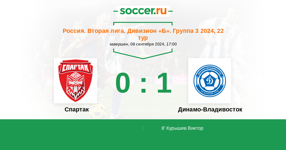 Протокол матча Спартак против Динамо Владивосток