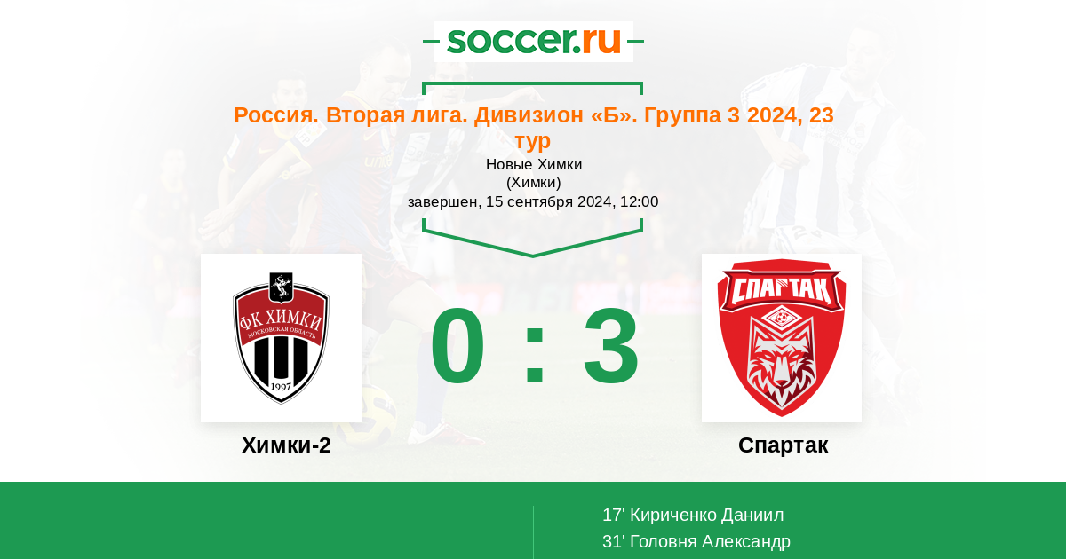 Протокол матча Химки-2 против Спартак