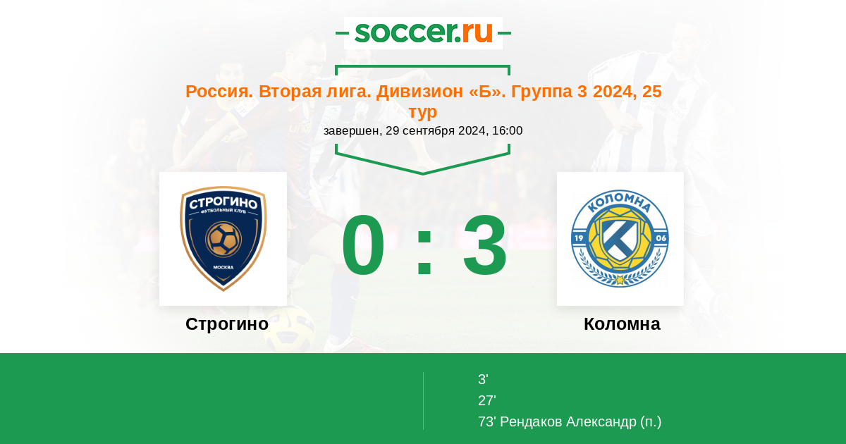 Протокол матча Строгино против Коломна