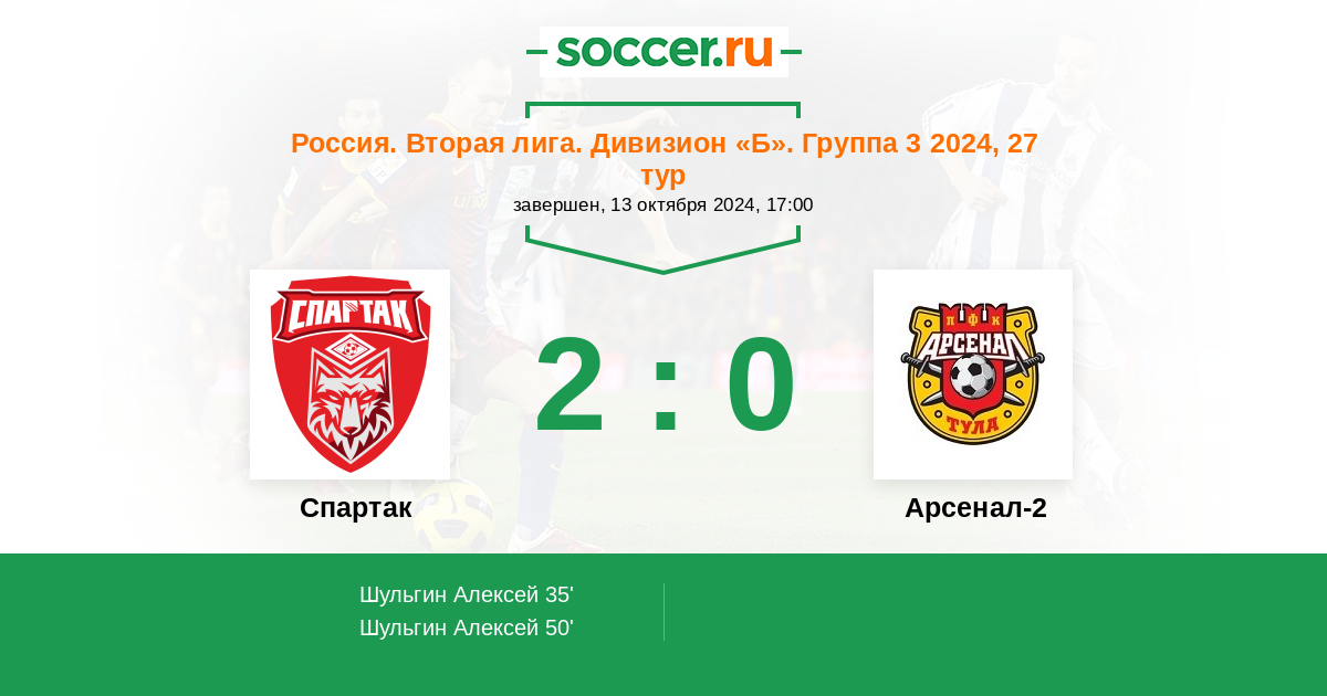 Протокол матча Спартак против Арсенал-2