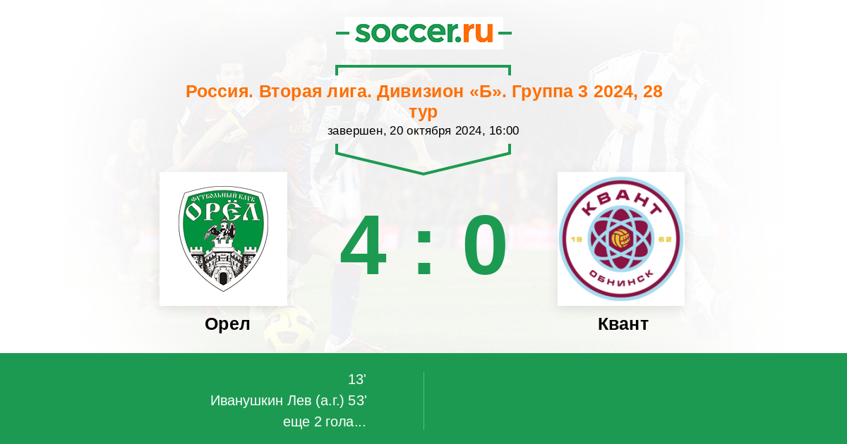 Протокол матча Орел против Квант