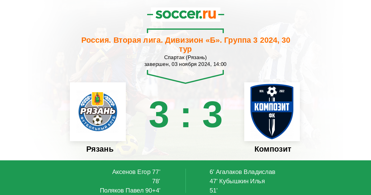 Протокол матча Рязань против Композит