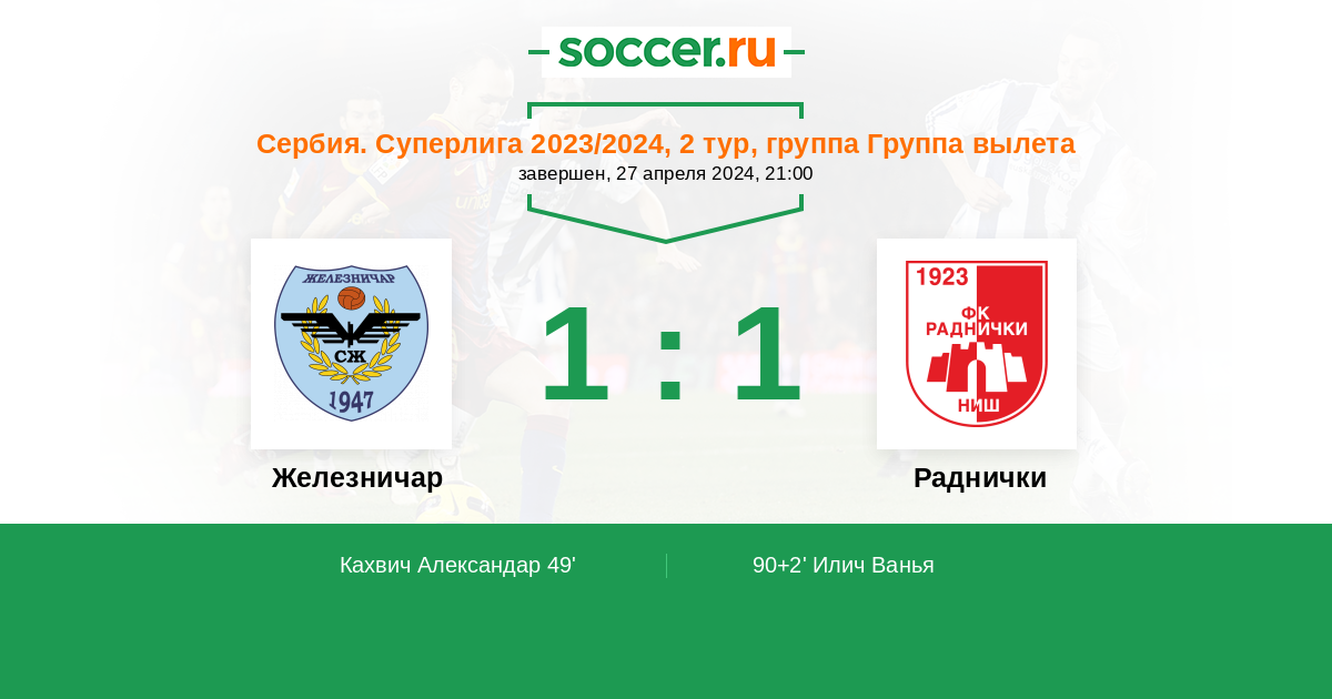 49' (1:0) Кахвич Александар (18) (Пуртич Стефан (77))