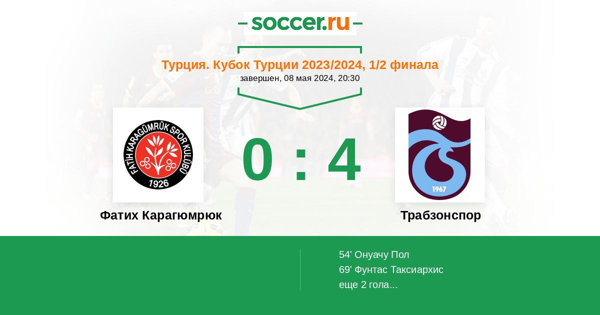 Протокол матча Фатих Карагюмрюк против Трабзонспор