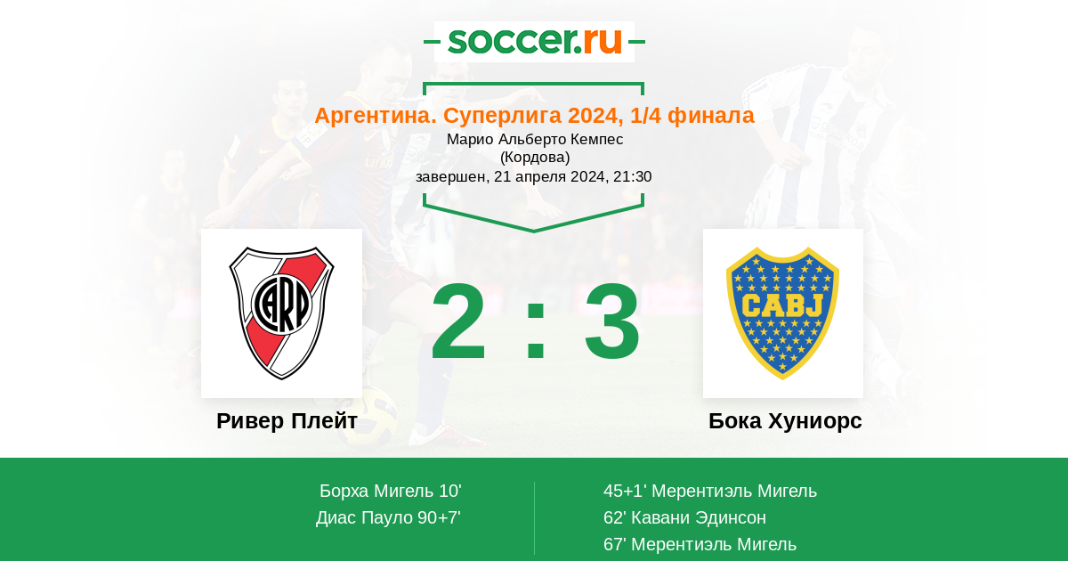 Протокол матча Ривер Плейт против Бока Хуниорс