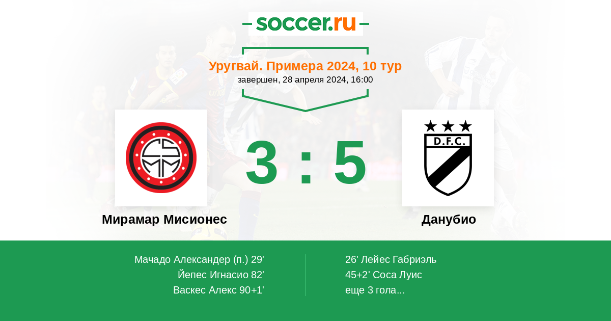 Протокол матча Мирамар Мисионес против Данубио