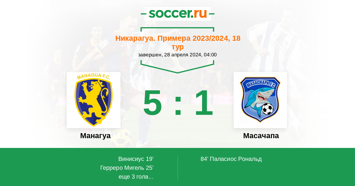 Протокол матча Манагуа против Масачапа