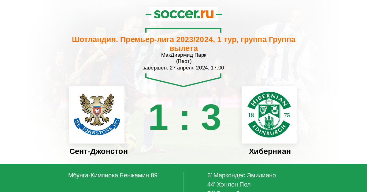Протокол матча Сент-Джонстон против Хиберниан