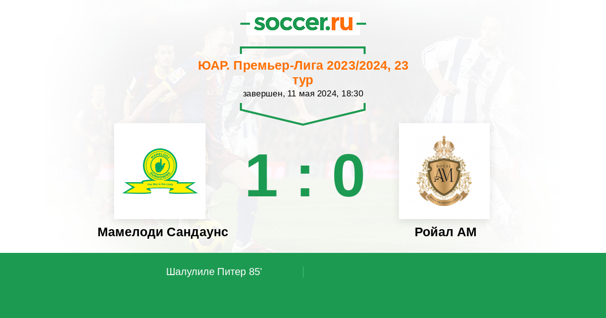 Протокол матча Мамелоди Сандаунс против Ройал АМ