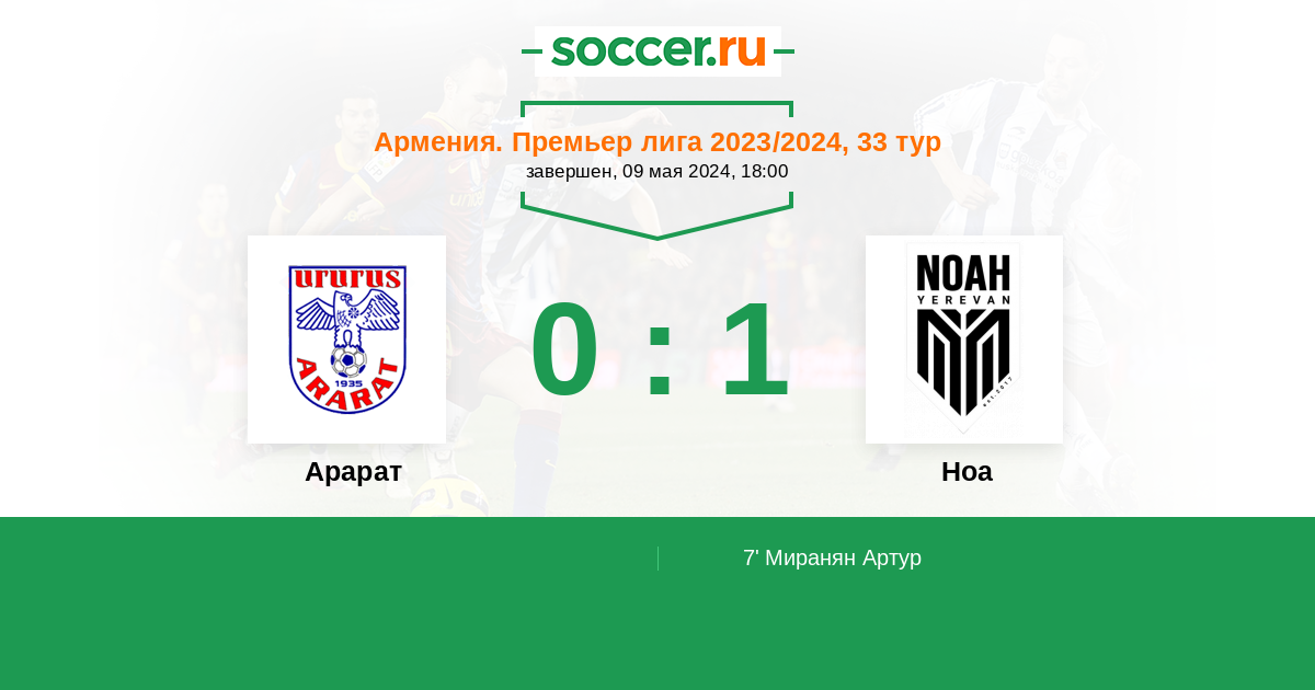 Протокол матча Арарат против Ноа