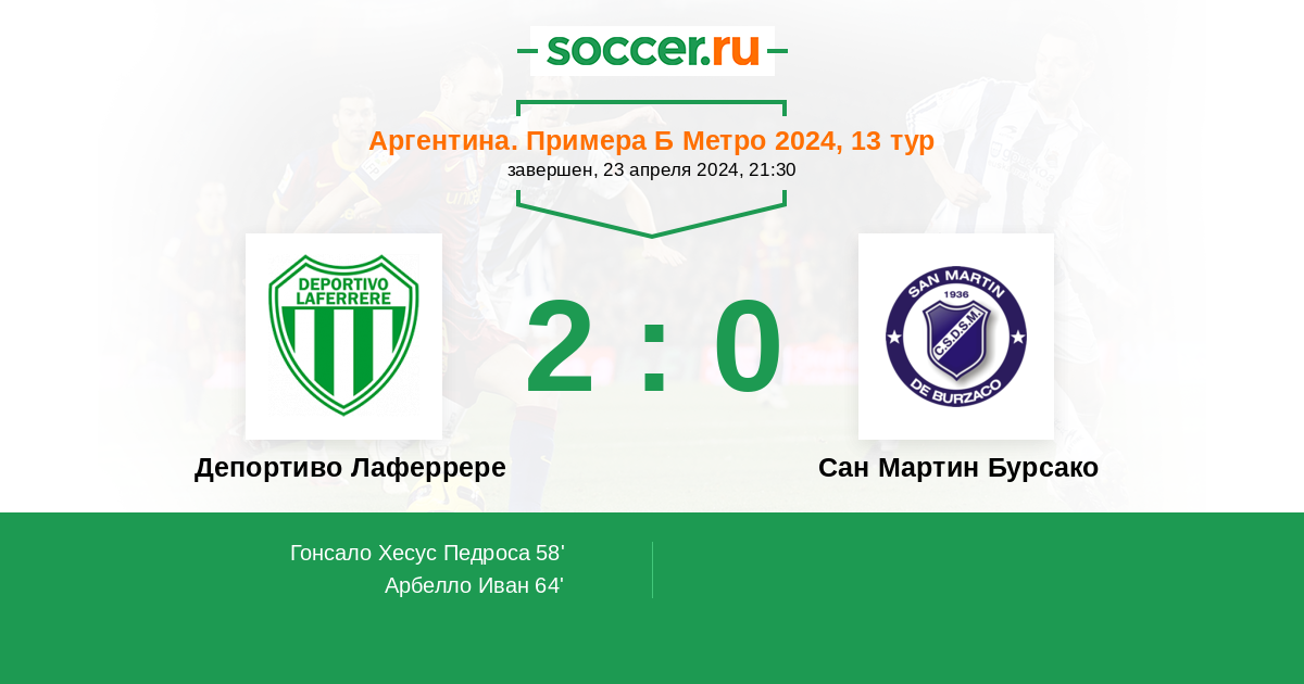 Протокол матча Депортиво Лаферрере против Сан Мартин Бурсако