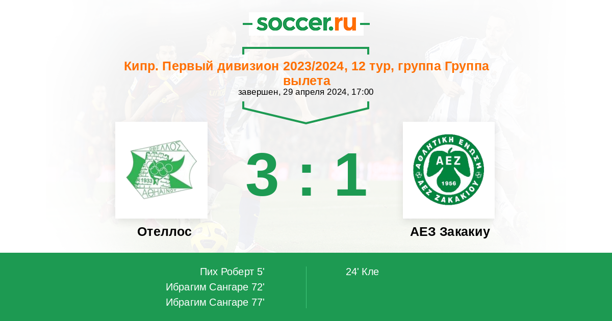 Протокол матча Отеллос против АЕЗ Закакиу
