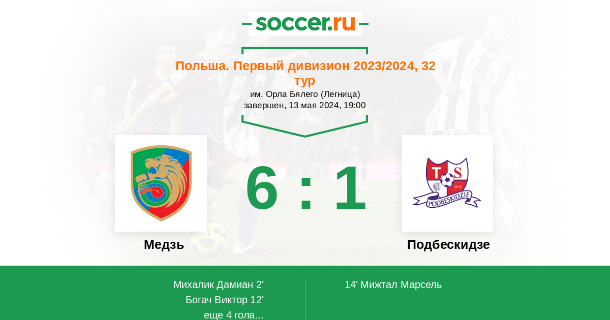 Протокол матча Медзь против Подбескидзе