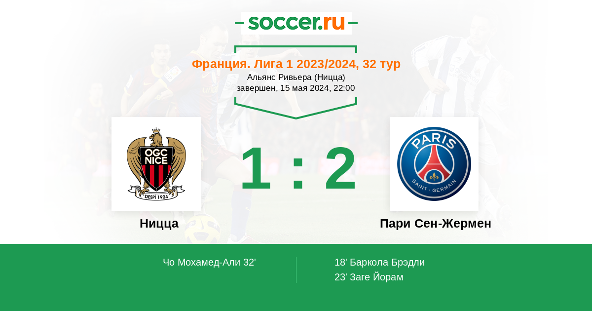 Протокол матча Ницца против Пари Сен-Жермен