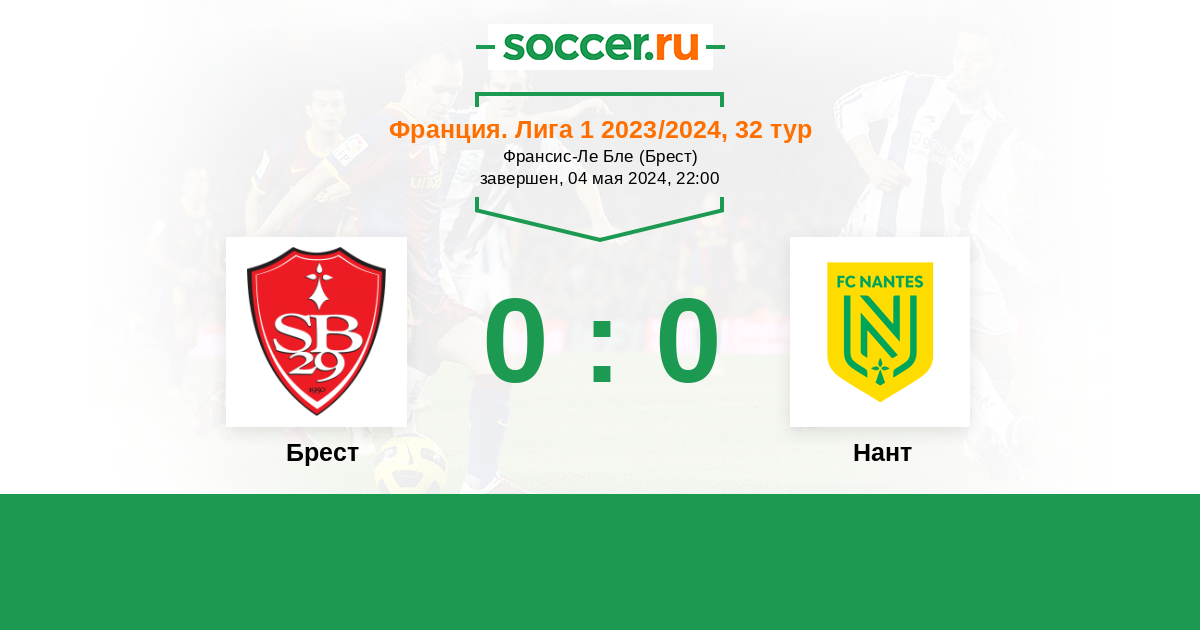 Протокол матча Брест против Нант